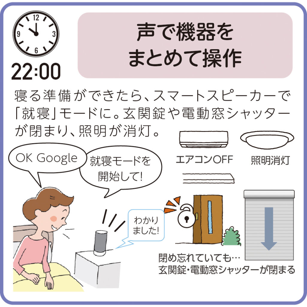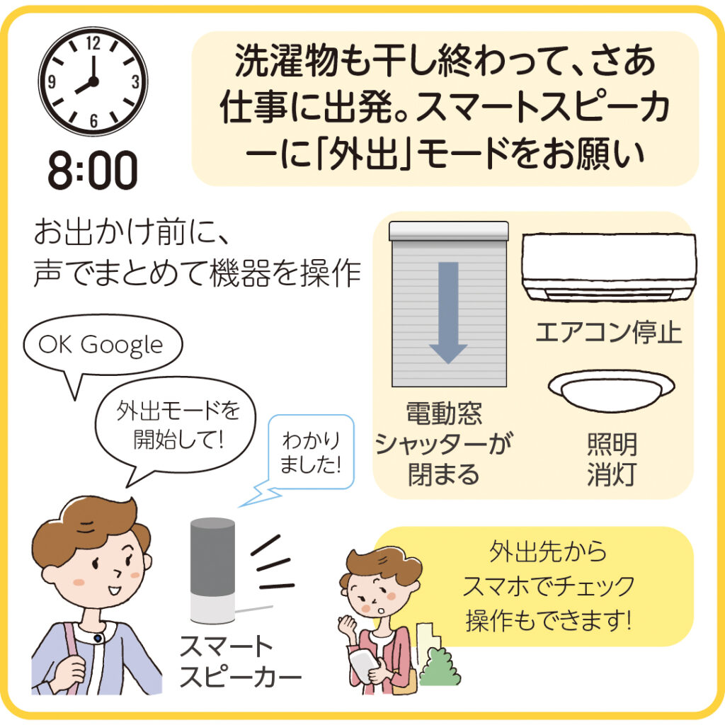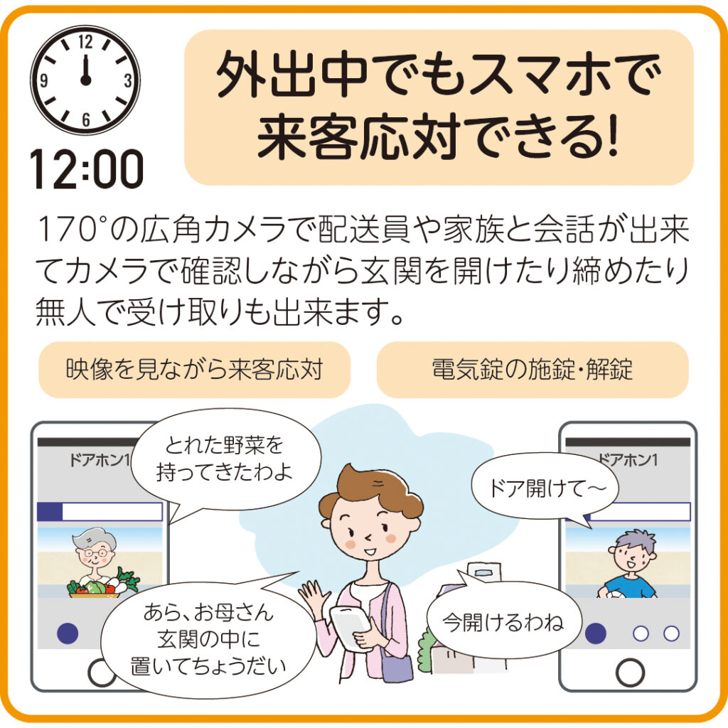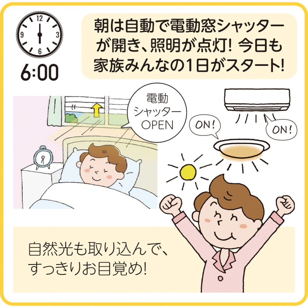 エアコンや明かり、お風呂や電動窓シャッター、防犯カメラ、みまもりカメラ、玄関ドアの施錠まで、住まいの隅々までコントロール。家事や光熱費の効率化に加え、安全で安心な暮らしをサポートします。