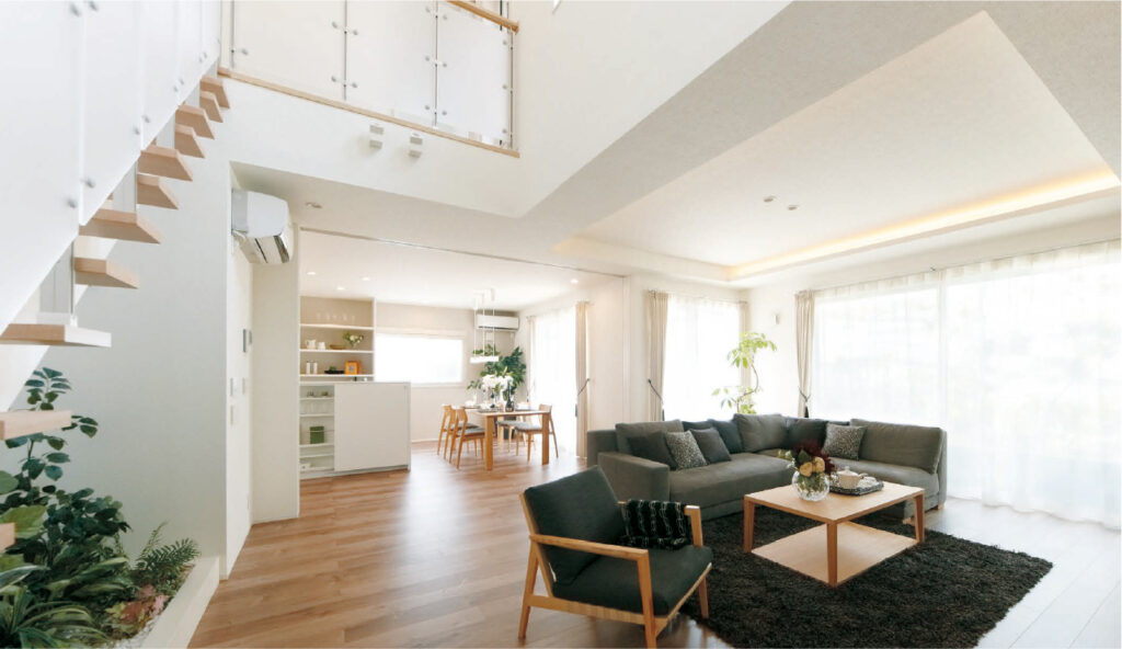 天井が高い家では音が響きやすくなるため、厚手のラグやカーテン家具を配置、適切な音環境を整えることで、家族それぞれがリラックスしやすくなり、静かで快適な空間を実現できます。