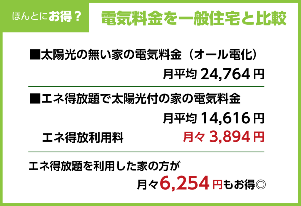 「エネ得放題」は、高性能な太陽光発電システムを、購入しないで利用いただける「クリーンエネルギーをお得に使い放題」できるサービスです。